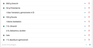 Wie erwähnt kann man dies in den Einstellungen deaktivieren. Eine weitere Funktion betrifft die zugeordneten Zutaten. Deaktiviert man die Icons, sieht man diese beim Bearbeiten der Zubereitung, ob eine Zutat erkannt worden ist. Dies wird anhand eines grünen Indikators angezeigt.